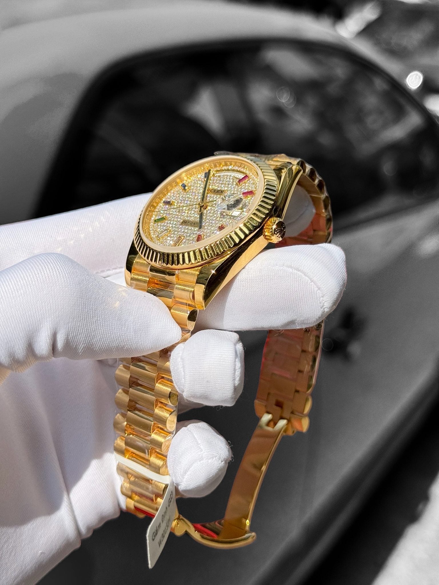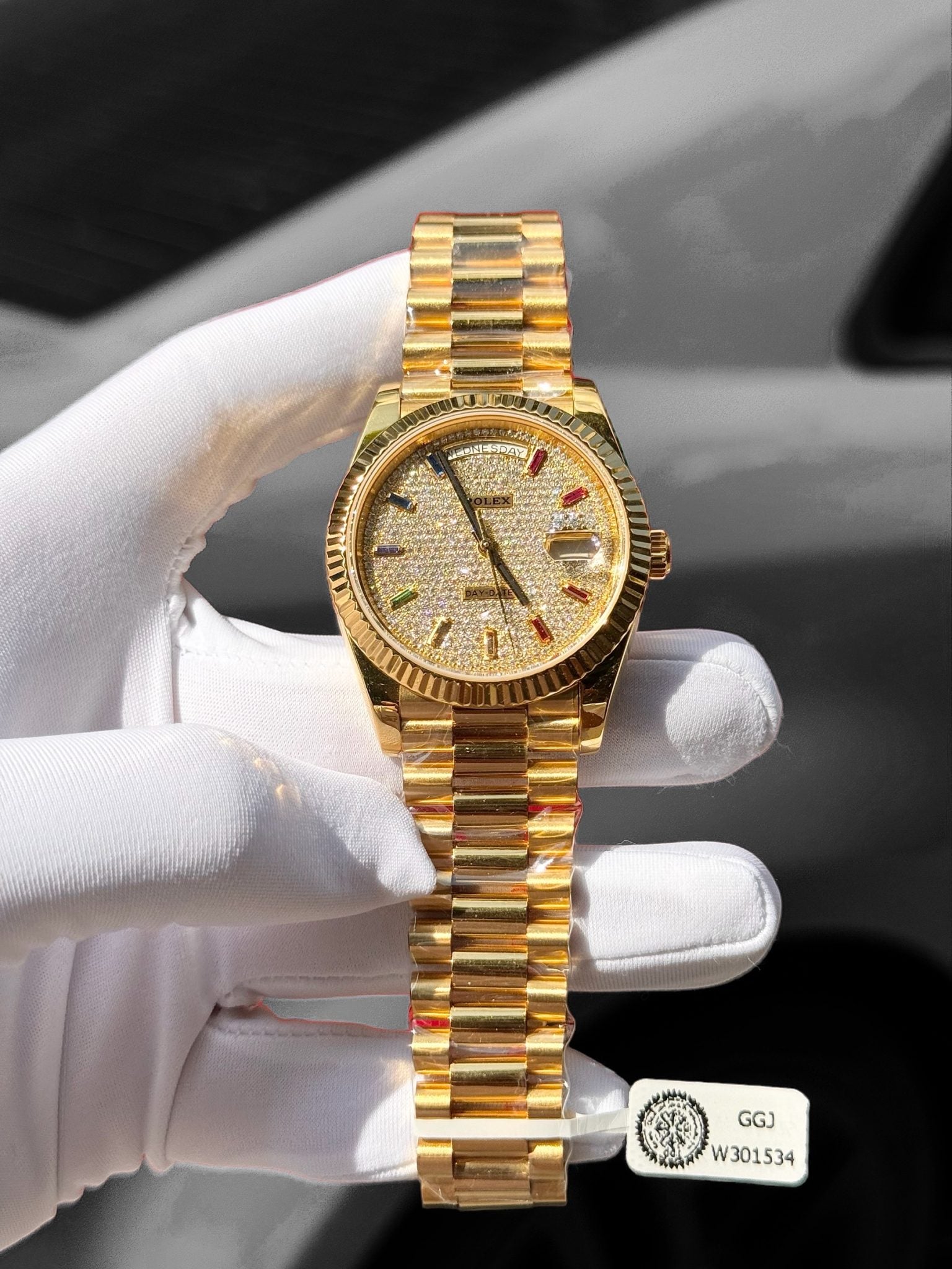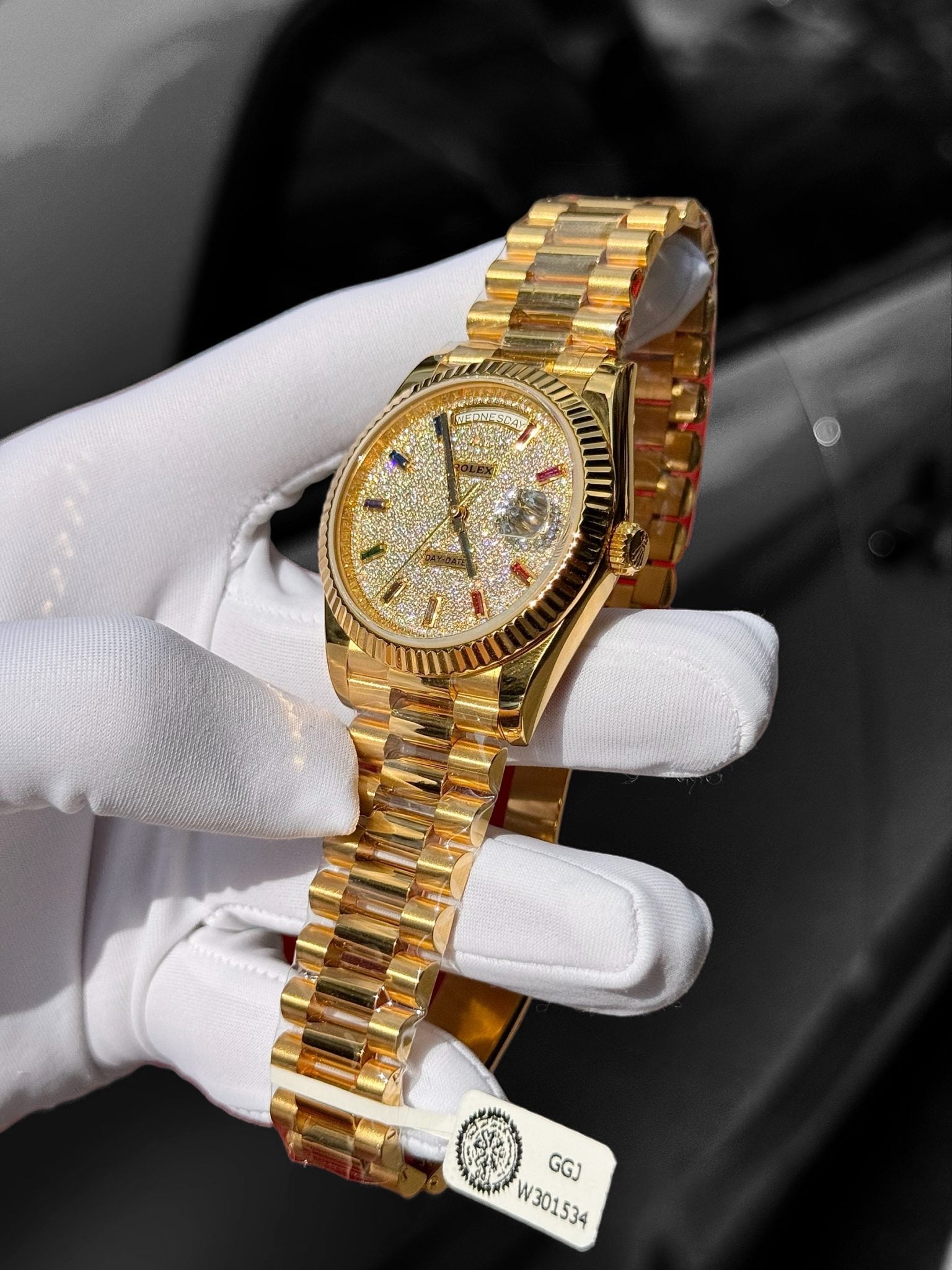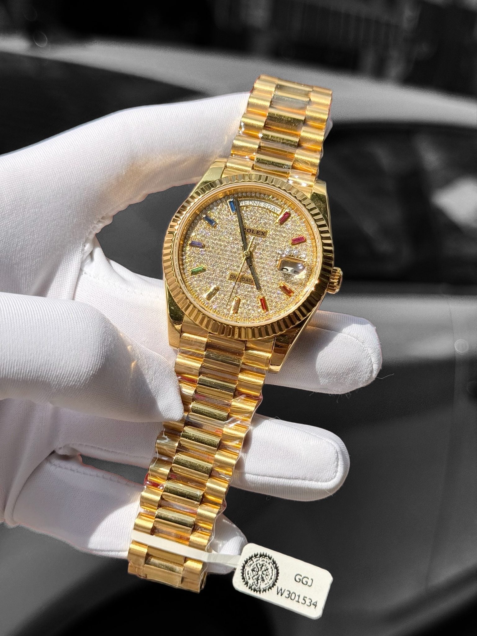 Rolex 1:1 Swiss Day-Date 18K Gold Wrapped Customs Moissanite Diamonds Dial GMF 40mm