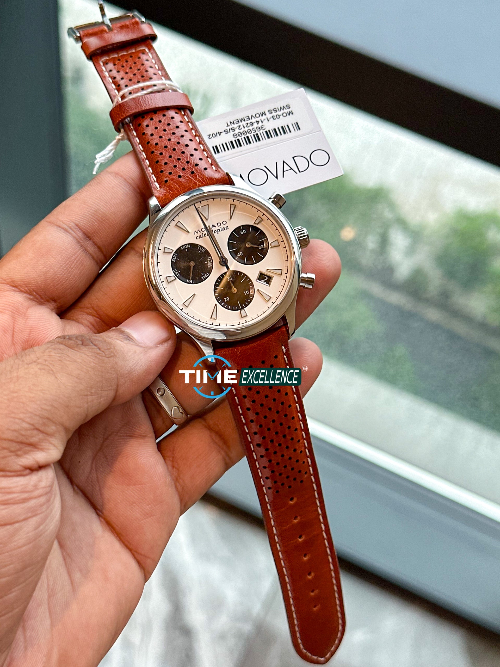 Movado 1:1 Swiss Heritage Calendoplan Chronograph White Dial Brown Leather Strap Watch For Men - 3650008