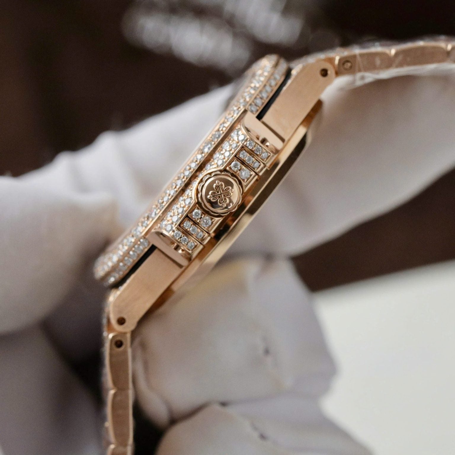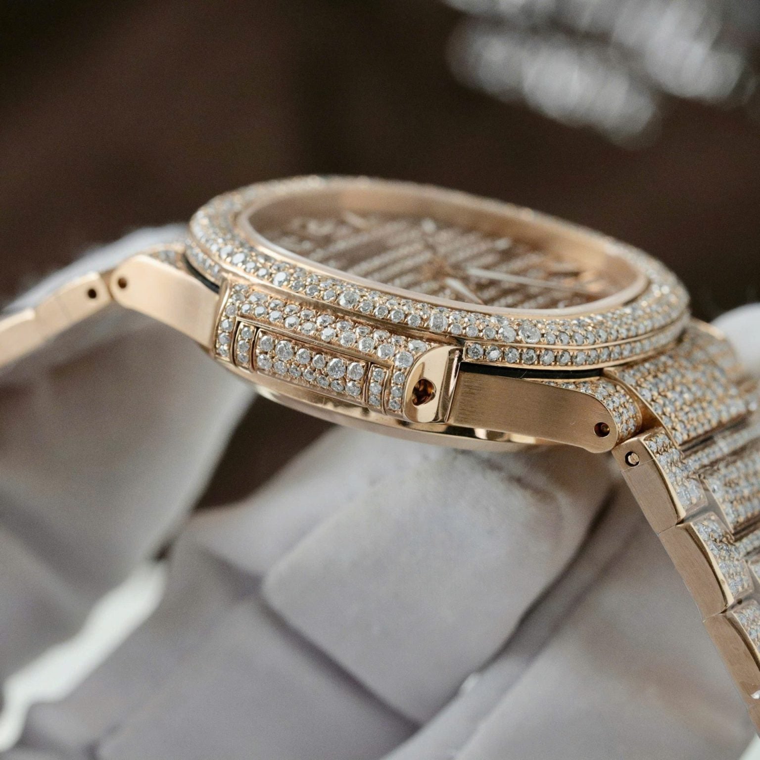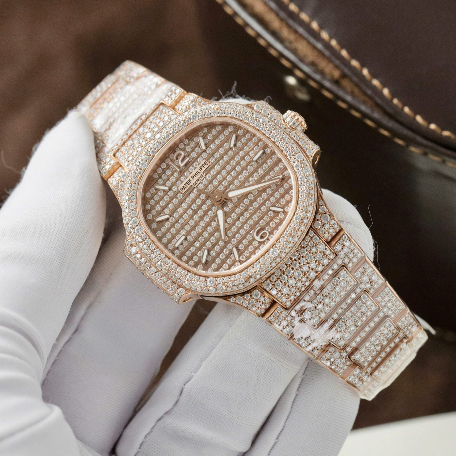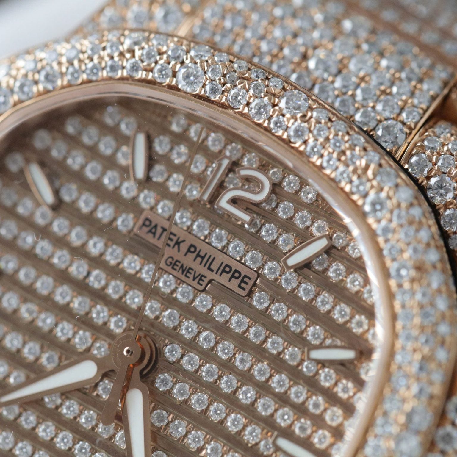 Patek Philippe Nautilus 7118 Swiss 1:1 Watch Gold Wrapped + Moissanite Diamonds Custom 35.2mm