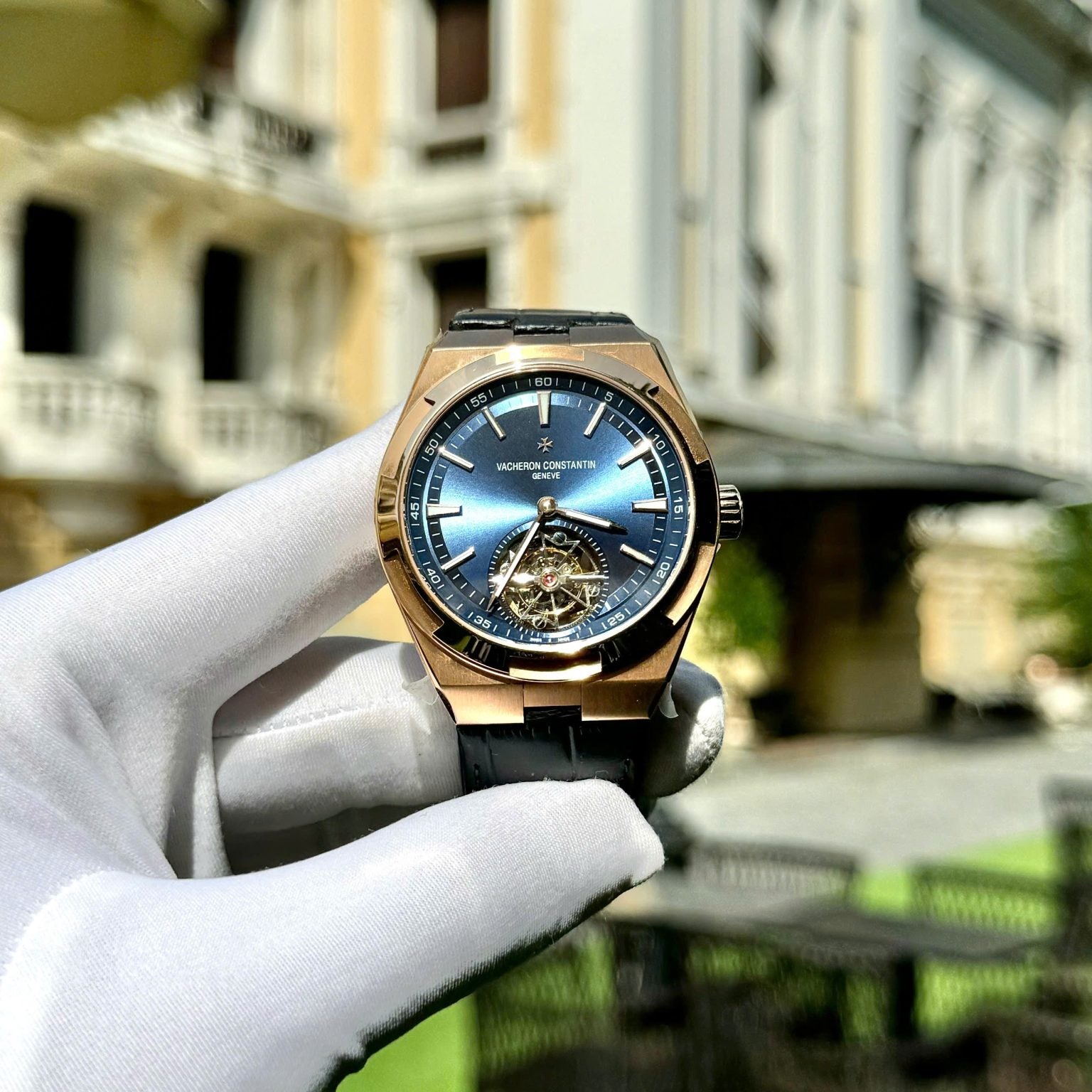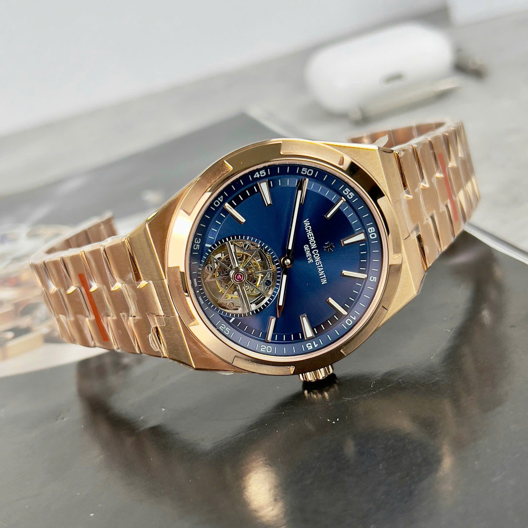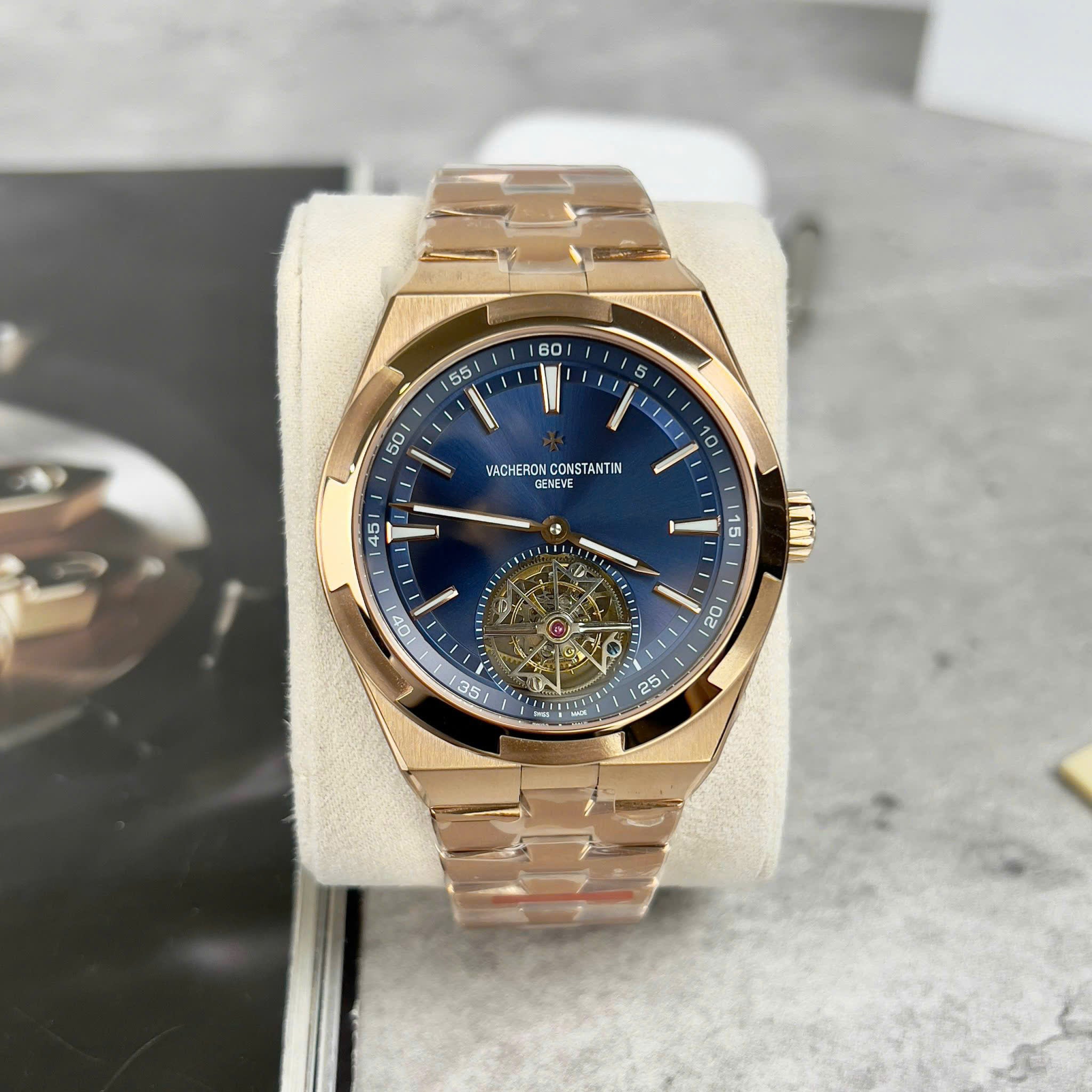Vacheron Constantin Swiss 1:1 Watch Tourbillon Movement Rose Gold Blue Leather Strap 41mm