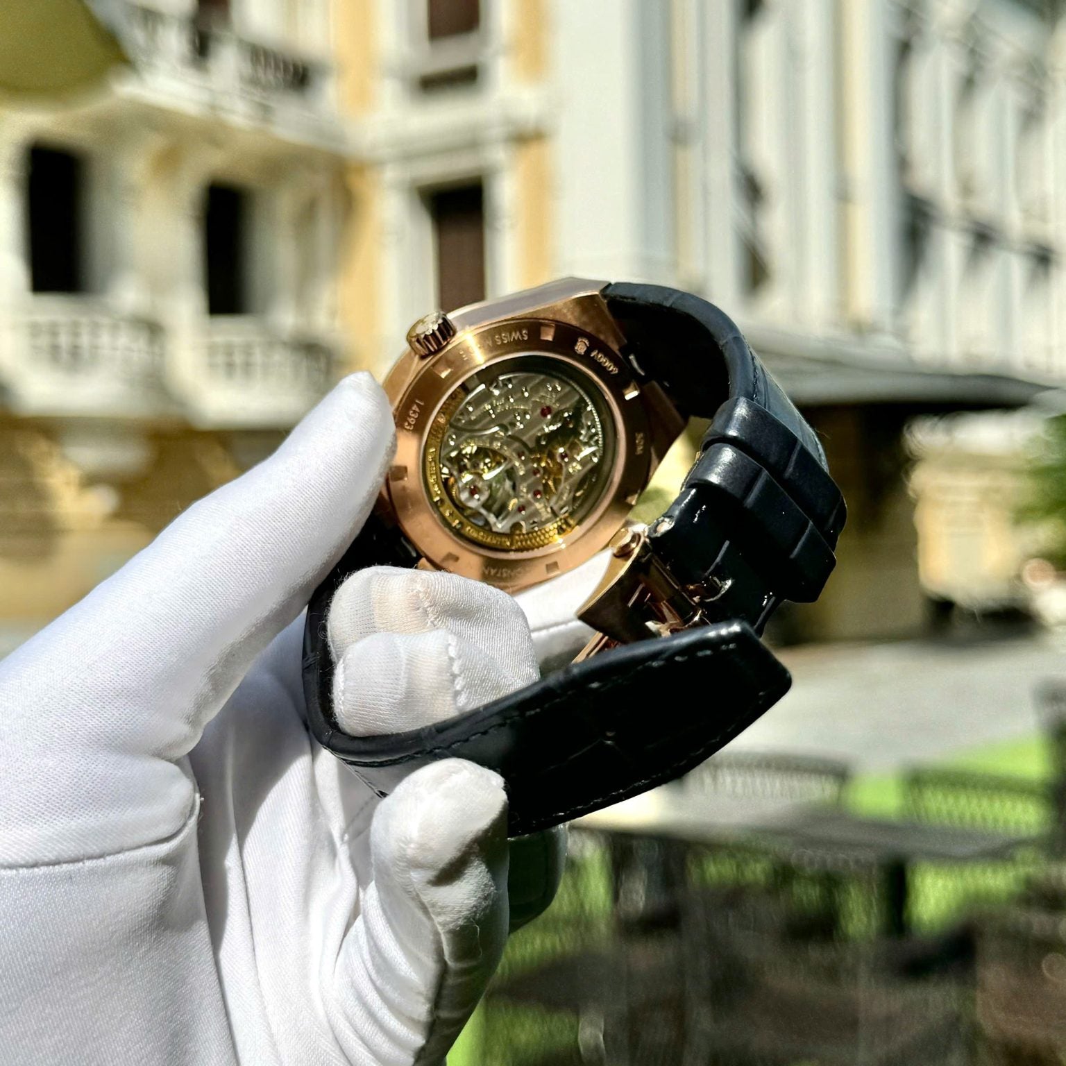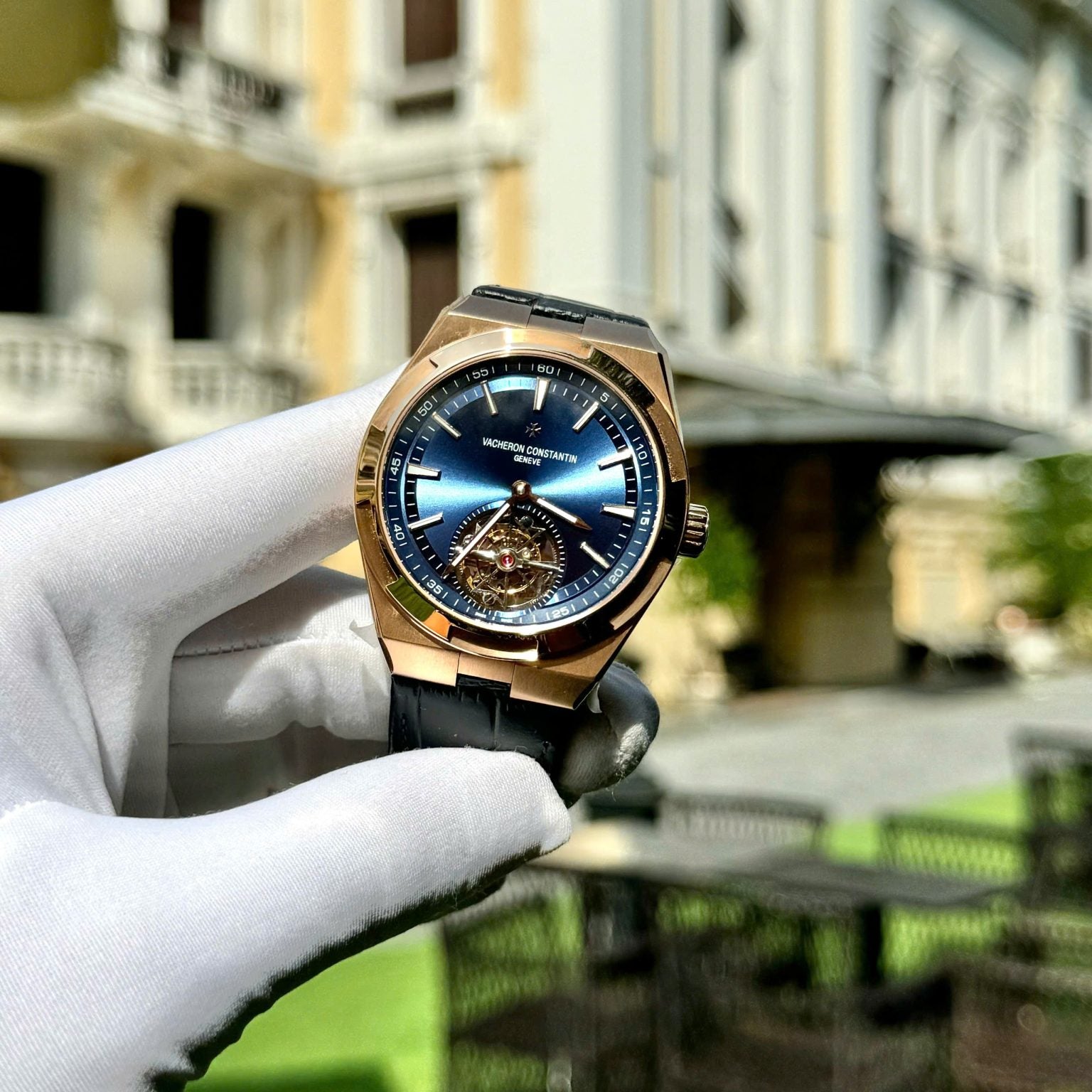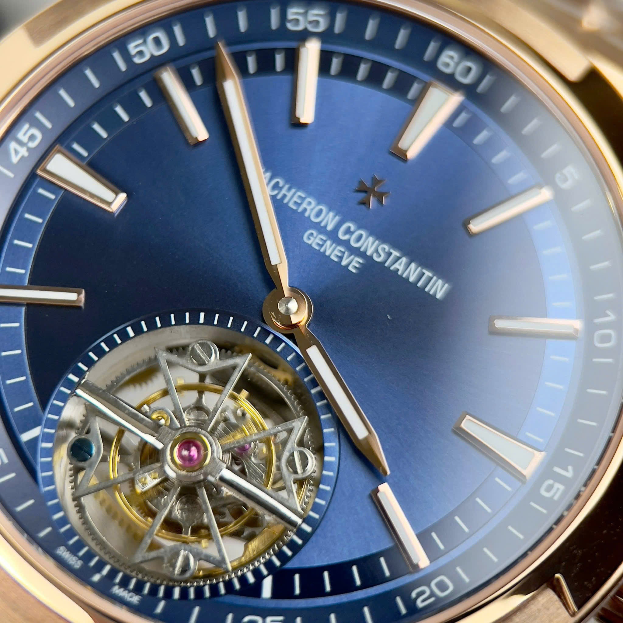 Vacheron Constantin Swiss 1:1 Watch Tourbillon Movement Rose Gold Blue Leather Strap 41mm