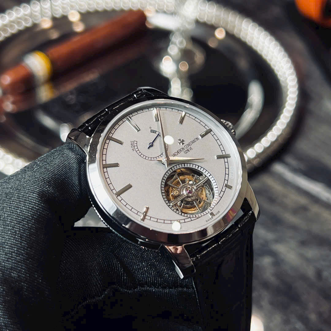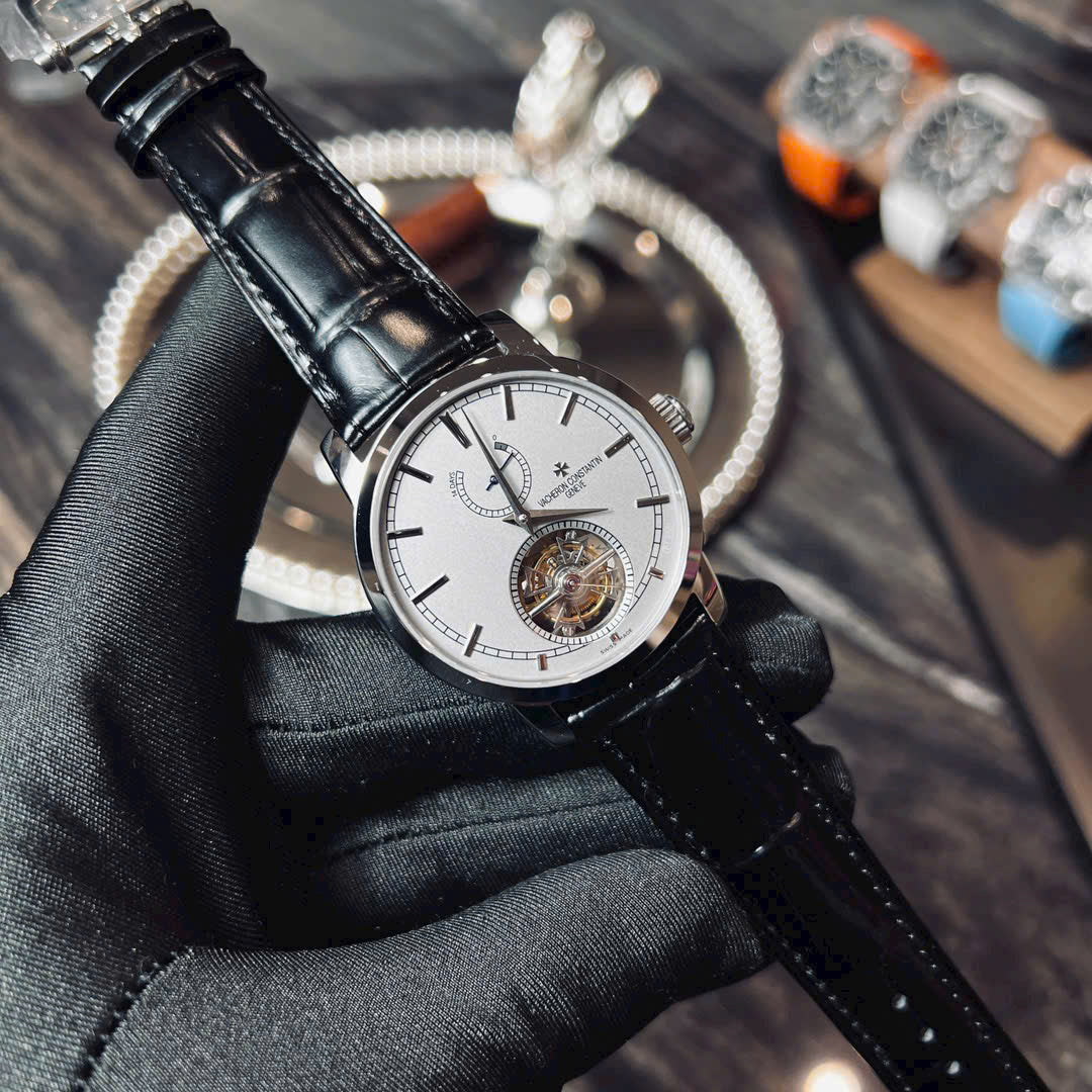 Vacheron Constantin Tourbillon Swiss 1:1 Watches Black Leather Strap 42mm