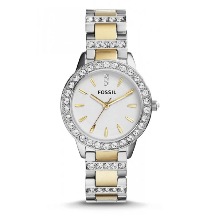 Fossil Jesse Crystals White Dial Two Tone Steel Strap Watch For Women - ES2409