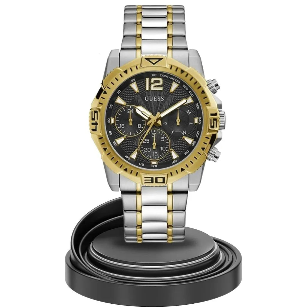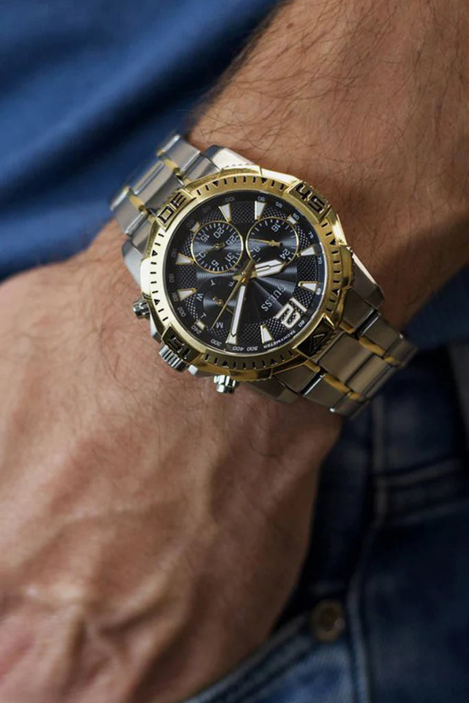 Guess Commander Chronograph Black Dial Two Tone Steel Strap Watch for Men - GW0056G4